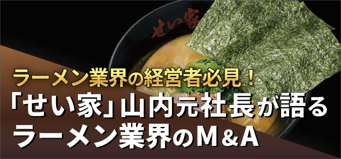 東京にて一世を風靡した家系ラーメンチェーン「せい家」。今冬M&Aを決断しました。「どのように30店舗までのチェーンを広げたか」「なぜM&Aを決断したのか」そして「譲渡のタイミングは」本セミナーでは、創業者の山内勝彦氏がM&Aの背景とラーメン業界の"今"にせまります。
