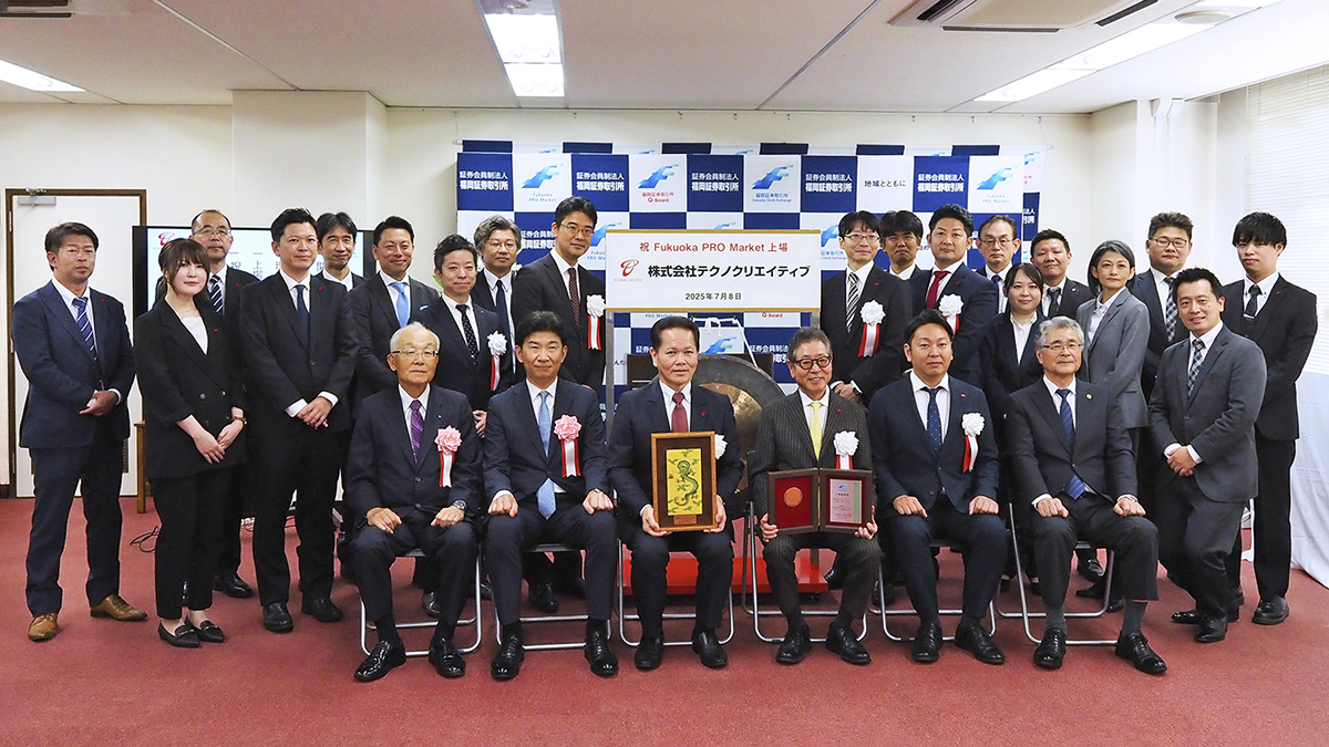 テクノクリエイティブは、今後のさらなる成長発展のために、同社の本社ならびに拠点のある九州地域におけるビジネス機会の拡大、および信用力の向上を目的として、Fukuoka PRO Marketへの上場いたしました。