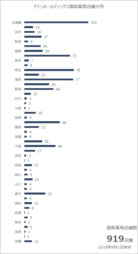 今川薬品の44店舗が加わったことで、2003年3月期には合計130店舗の調剤薬局業界のトップ企業となりました。