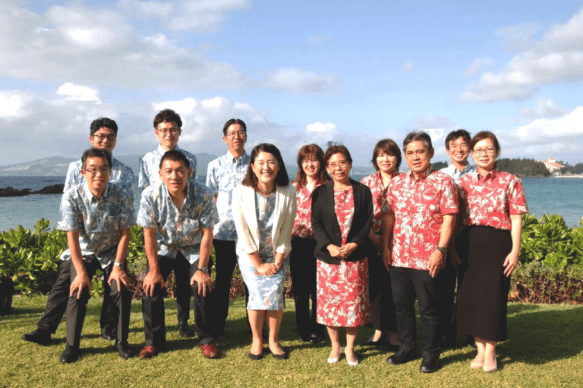 そのため、事前に沖縄に足を運び、会場の選定をし、当社では“初”となる青空の下で綺麗な透き通った海を見渡せる、ハレクラニホテル内のガーデンでM&A成約式を執り行うことを決定いたしました。