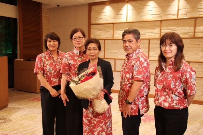 式の中では、沖縄での慶事事には必ずといっていいほど踊る「カチャーシー」を三線の演奏に合わせて参加者全員で踊る場面も作り、笑顔あふれる時間はあっという間に過ぎていきました。