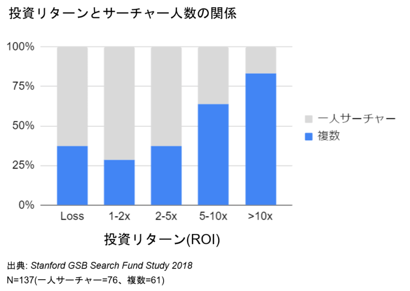 そして、二人チームのサーチファンドの方が成果が出やすいという調査結果もある。