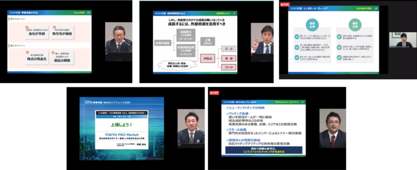 事業承継型M&A、海外M&Aなど様々な形のM&Aをはじめ、企業の成長をレバレッジする成長戦略型M&A及びTPM(TOKYO PRO Market)への上場など、当社が支援するM&Aに関わる幅広い最新のノウハウなど21のテーマの講演を総勢25名のM&Aアドバイザーからお届けしました。