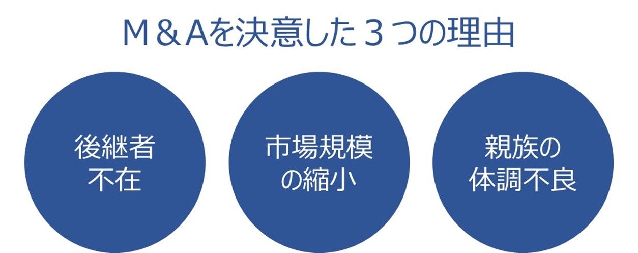 そういった中、社長は7代目として会社経営をされておりましたが、「後継者不在」、「作っている食品の市場規模の縮小」、「役員である親族の体調不良」などから今後の企業の存続と発展を考え、当社にご相談を頂きました。