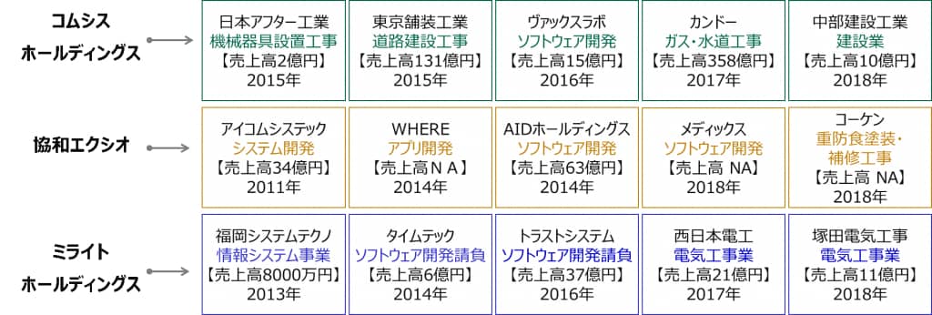 具体的には、コムシスホールディングス・協和エクシオ・ミライトホールディングスの3グループである。