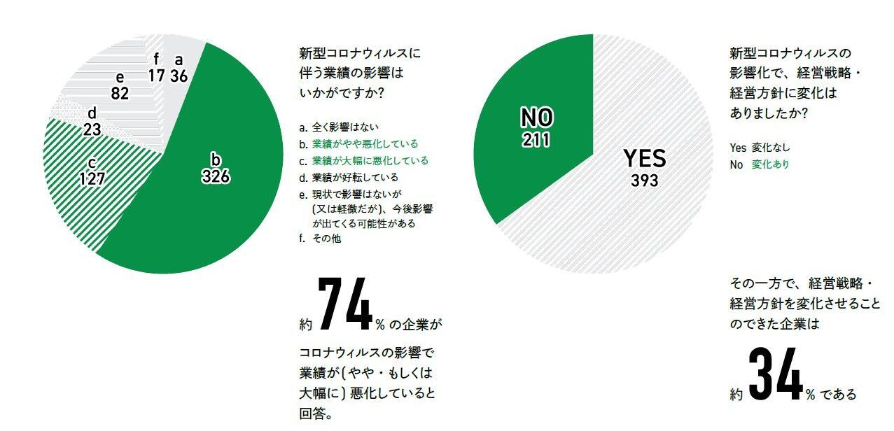 その一方で、上記影響化で、経営戦略や経営方針を変化させた企業はその半分程度とのことで、不測の事態でも変わらない(変われない)企業は決して少なくありません。