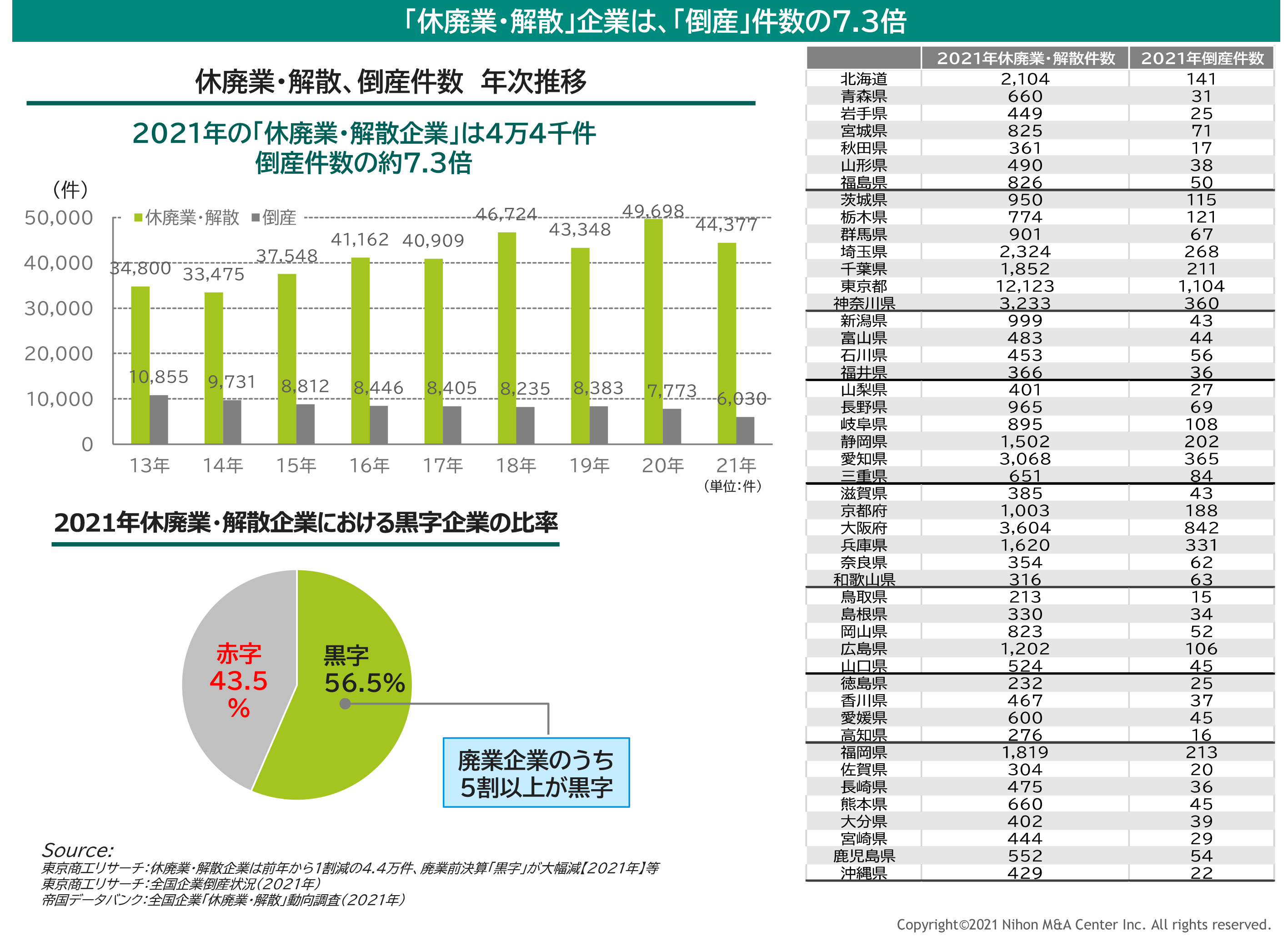※1 東京商工リサーチ「休廃業・解散企業は前年から1割減の4.4万件、廃業前決算『黒字』が大幅減 等(2021年)