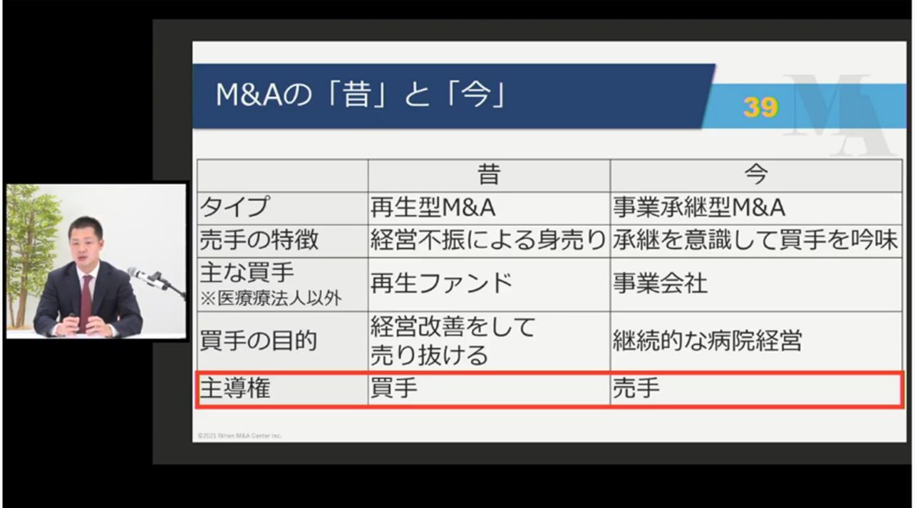 現在、多くの買い手は、その病院・クリニックが培ってきた信頼をなるべく引き継ぎたいので、経営陣、理事長や病院・クリニック名がそのまま残ることが多いのです。
