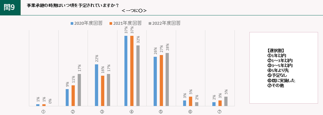 一方で、その時期については、5年より先が最も多く、次いで予定なしという回答でした。