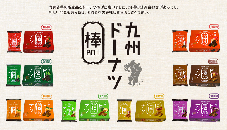 大手菓子メーカーで取締役を務め、菓子業界に明るい田中社長は「新商品の開発」と「販路の拡大」で会社の難局に立ち向かいました。新商品の開発では、主力商品のドーナツ棒を九州のご当地味に仕立て、次々に新フレーバーを発売。福岡ならあまおう苺、大分はカボス、宮崎はマンゴーといったヒット商品につながりました。田中社長の人脈もフル活用し、誰もが知っている森永製菓のミルクキャラメル、ミルクココアとのコラボ商品も発表。市場調査を元にピスタチオを取り入れた新商品など時流とトレンドに合わせたラインナップを揃えて新たな顧客の開拓に成功しました。