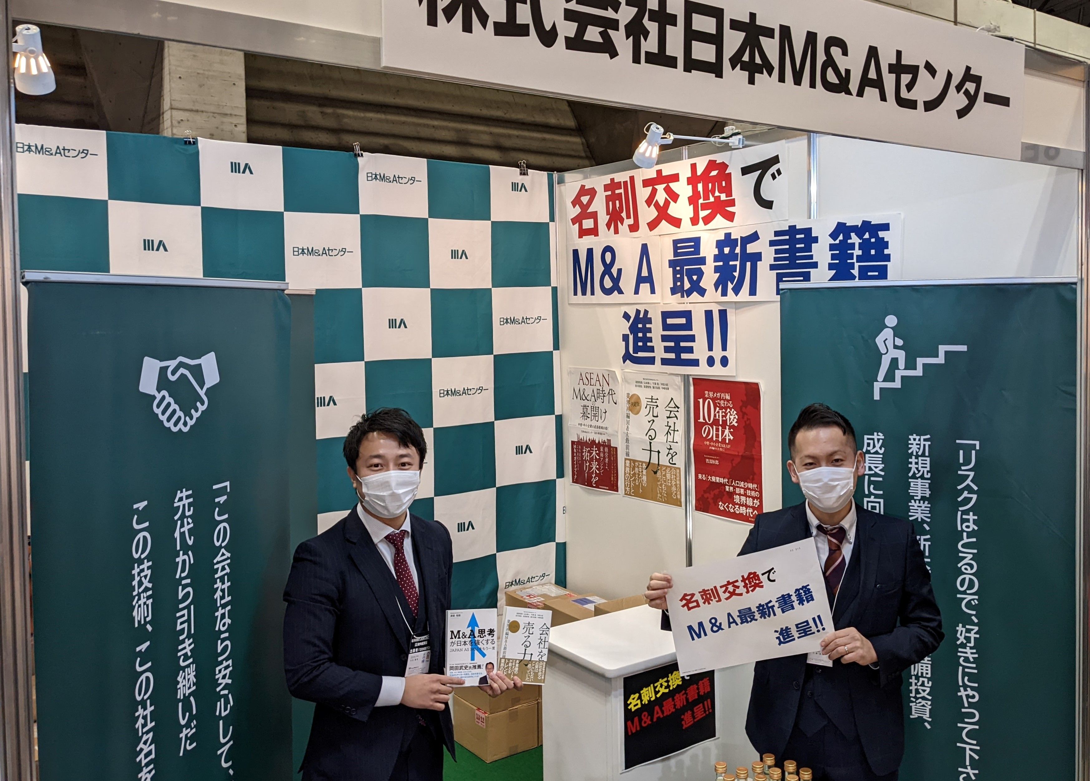 「こんにちは、M&Aの最新書籍をお配りしております」