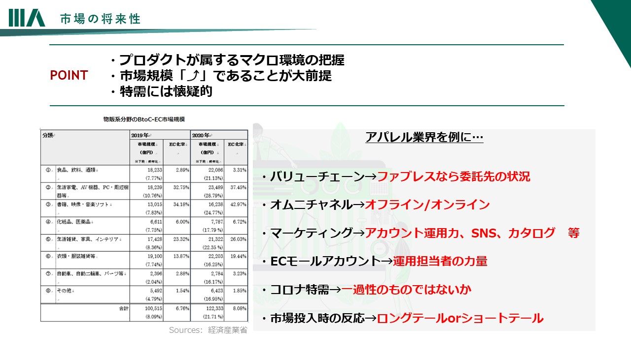 自社のプロダクトがロングテール、生活に密着しているか、衣食住なのか、トレンドの影響を受けるものなのか、そういう目線で見ていただくことも重要と考えます。