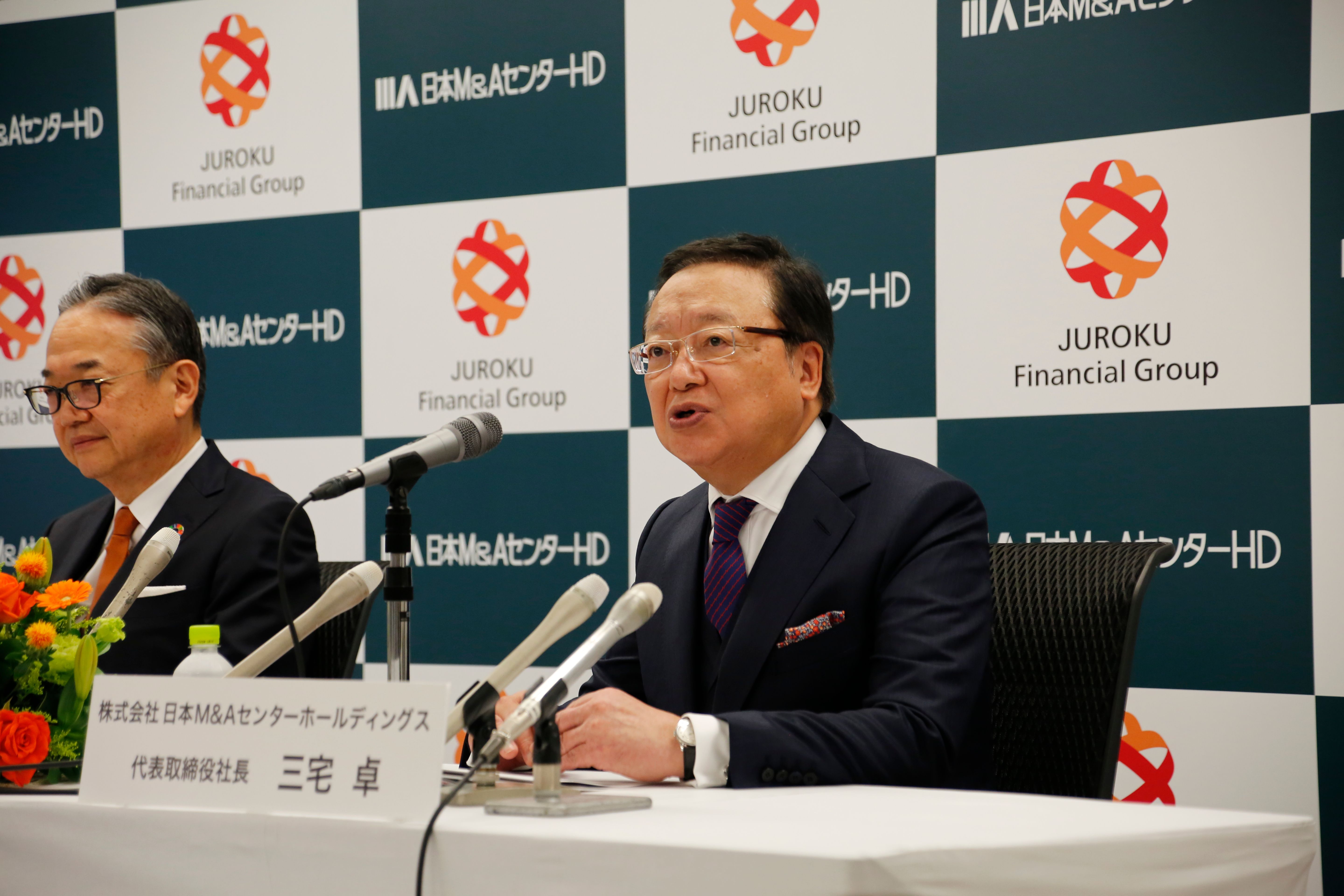 十六フィナンシャルグループ代表取締役社長池田直樹氏(左)日本M&Aセンターホールディングス代表取締役社長三宅 卓(右)