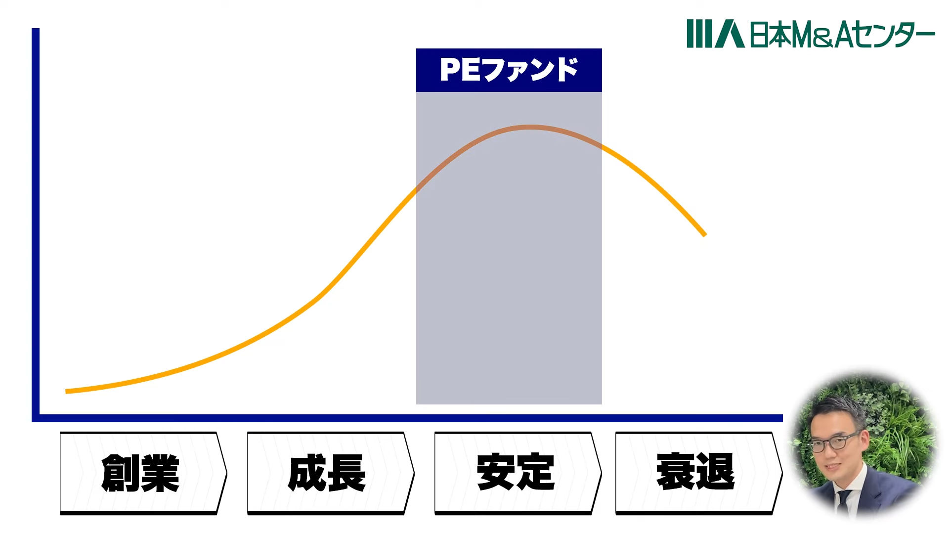 さらに企業が成長を遂げて、比較的安定してきたタイミングに入ってくると、私たちが今お話をしているPEファンドが活躍する場になります。