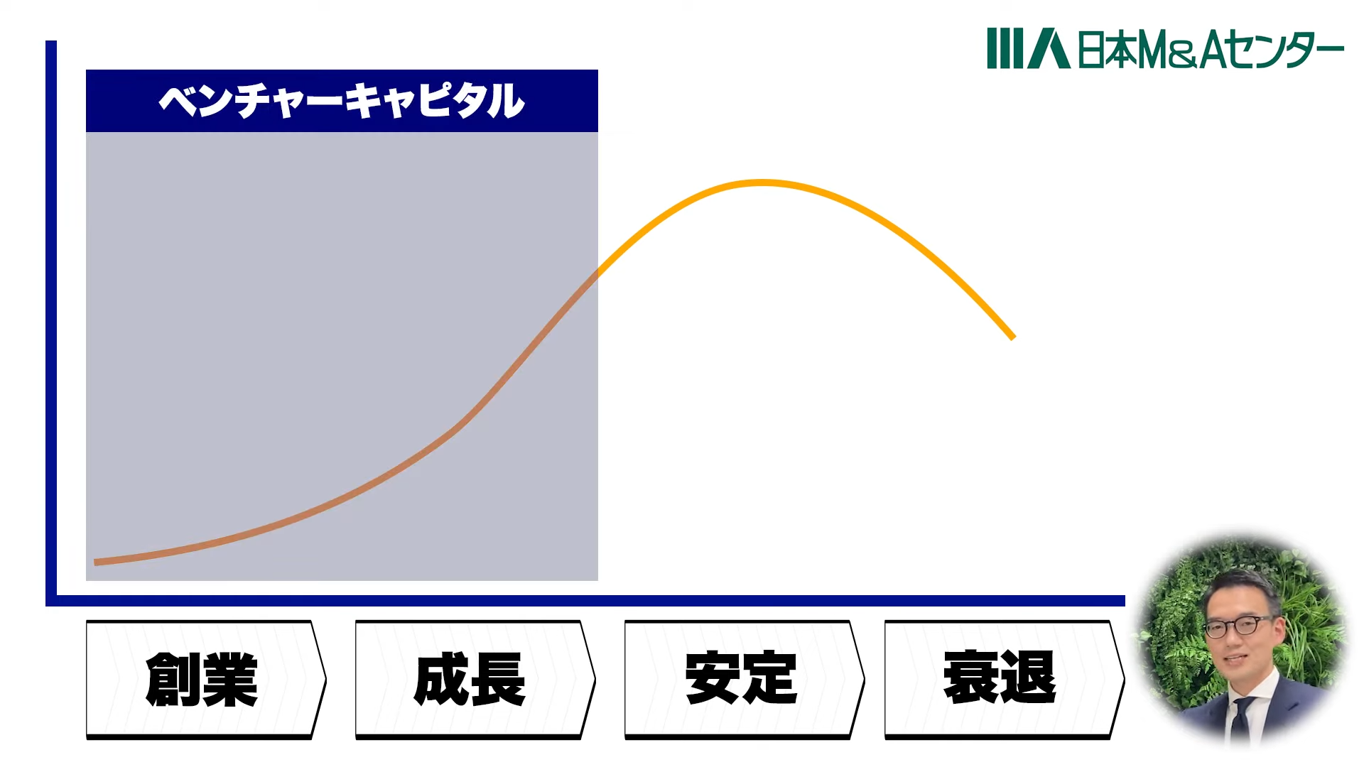 企業の成長曲線でいうと、創業から間もなくこれから大きく成長を遂げそうな会社様、こういった会社様は「ベンチャーキャピタル」がお金を出して投資するケースが多く見られます。