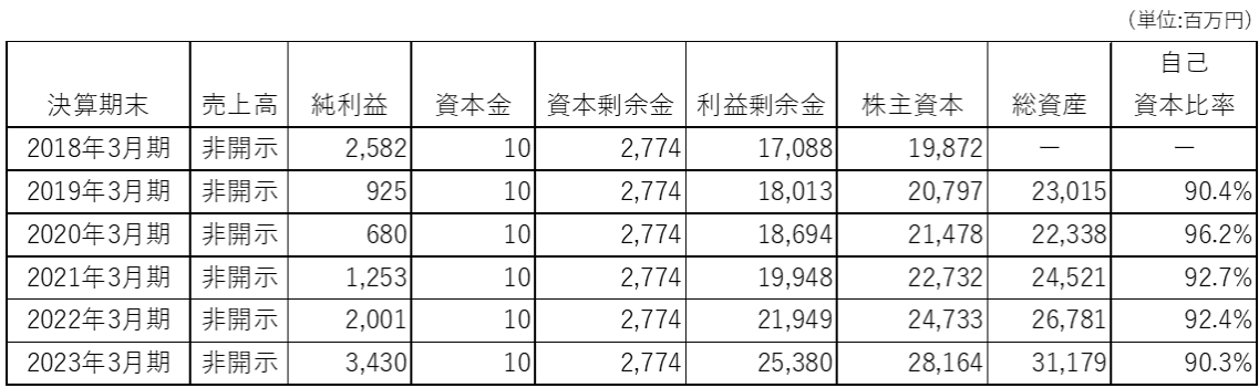 一部の数字しか把握できませんが、非常に綺麗な決算、超優良企業であることが見て取れます。