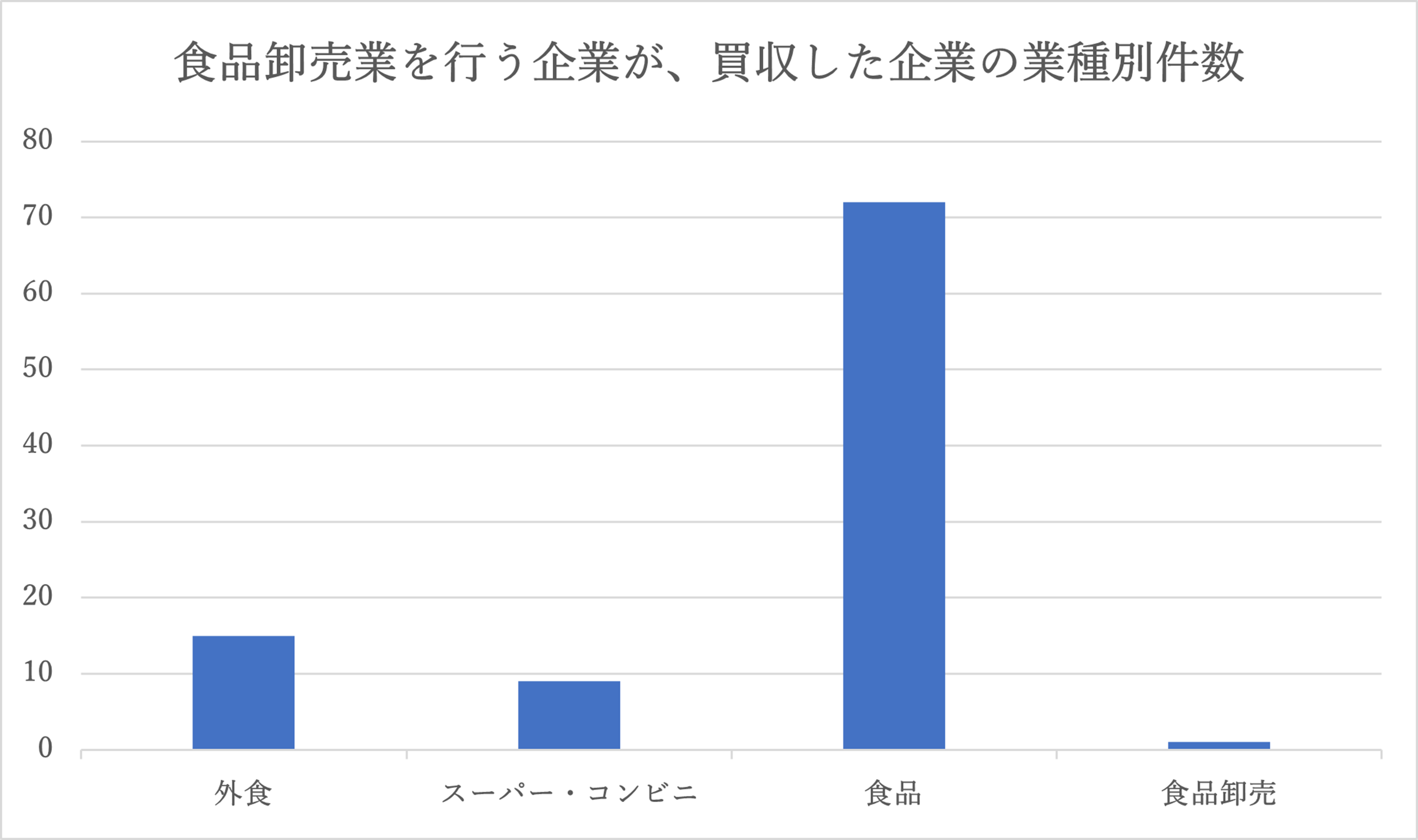 集荷や物流を活用でき、それに伴う取扱数量の増加、取引高の拡大など、卸売業者のM&A件数は少ないですが、シナジーが相応に見込まれることは容易に想像できます。