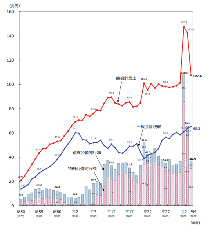 薬価引き下げの主な原因とされている日本の財政の状況は、直近のコロナ禍もありさらに厳しい状況となっています。コロナ禍による緊急的な支援もありましたが、2020年度は戦後過去最高額の歳出となり財源となる国債の発行額も過去最高となっています。日本の財政においては歳出が税収を上回る状況が常態化していましたが、コロナ禍での非常事態もありさらに財政赤字が拡大してしまっているのが現状です。
