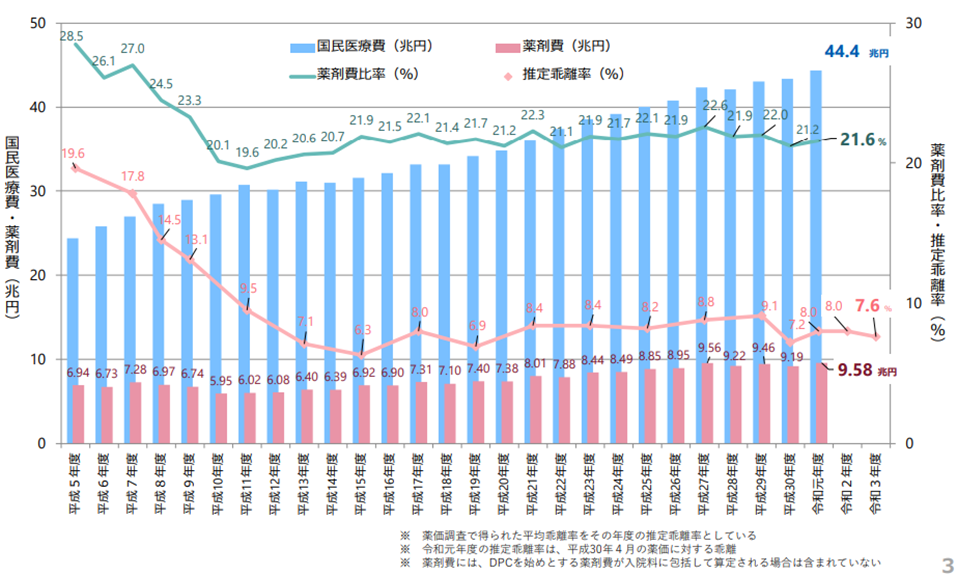 このように日本の財政の中でも薬剤費の存在は大きく、その価格を決定する薬価改定というのは日本の財政政策と密に関係していることがわかります。