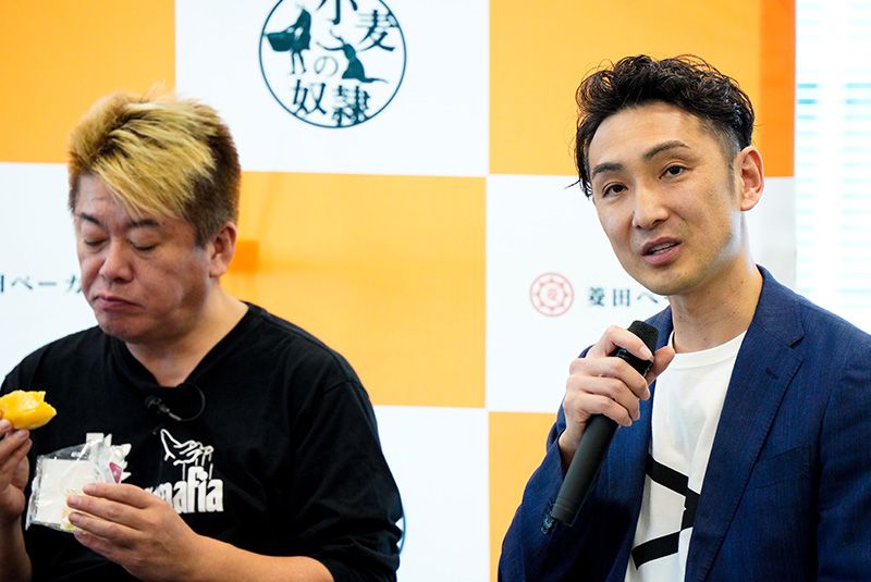 幡多のソウルフードとして親しまれている「羊羹パン」を手掛ける高知県宿毛市の「菱田ベーカリー」と、全国に約100店舗を展開するベーカリー“小麦の奴隷”を運営する「こむぎの」の資本業務提携を発表するお披露目会が2024年2月中旬に、日本M&Aセンター東京本社で開催されました。こむぎので経営戦略顧問を務める実業家の堀江貴文さんは「地方では人口減少で焼きたてのパンが食べられなくなるかも知れない。そうした社会課題を解決して、地方のベーカリービジネスを考えていきたい」と話しました。
