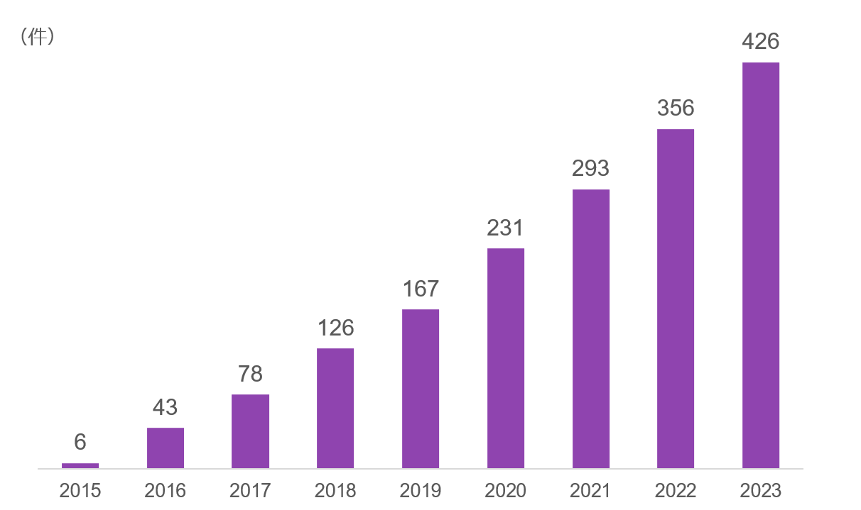 また、直近の中堅中小IT企業のM&Aも増加傾向であり、当社においては、2015年以降の累計で、400件以上と数多くのIT業界のM&Aの支援実績がございます。