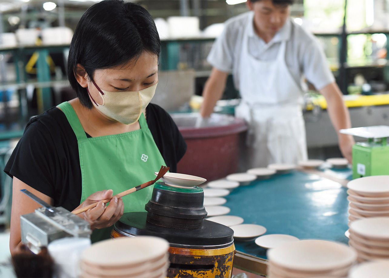 成形、素焼き、絵付け、本焼きなどの生産工程のすべてを、自社工場でまかなうことができ、機能性と意匠性にこだわった難易度の高い食器製造を得意とする
