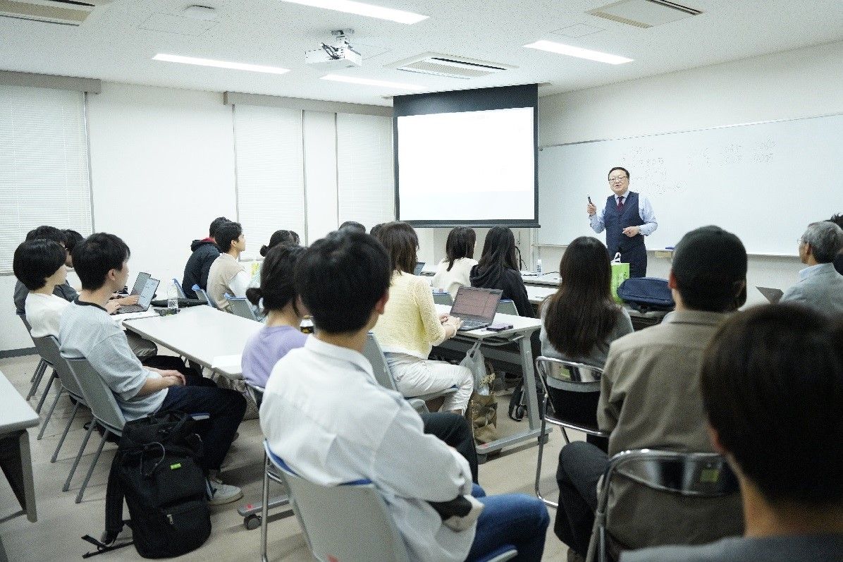 日本M&Aセンターホールディングスは、グループ会社の企業評価総合究所とともに京都大学経営管理大学院と産学連携し、2024年4月に「日本M&Aセンターホールディングス寄附講座」を開講しました。京都大学経営管理大学院への寄附講座開講は初の試みで、京都大学経営管理大学院 特命教授に就任した日本M&Aセンターホールディングス代表取締役社長の三宅 卓は10月25日、「成功するビジネスの創り方」と称した起業家養成講座を京都大学で開講し、会場を埋め尽くした約200名の学生が受講しました。