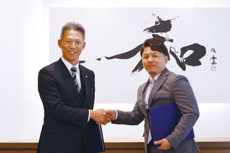 (左)<譲受け企業>株式会社エスオーシー(大阪府) 代表取締役 善野 謙一さん