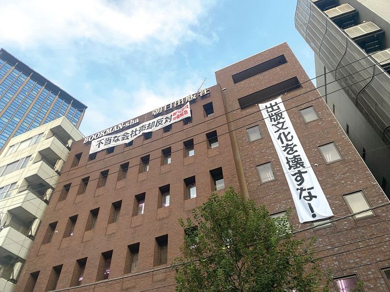 まず労働組合が「売却反対」との横断幕を自社に掲げ、メディアプラットフォーム「note」でM&Aの疑問点を発信し始めました。