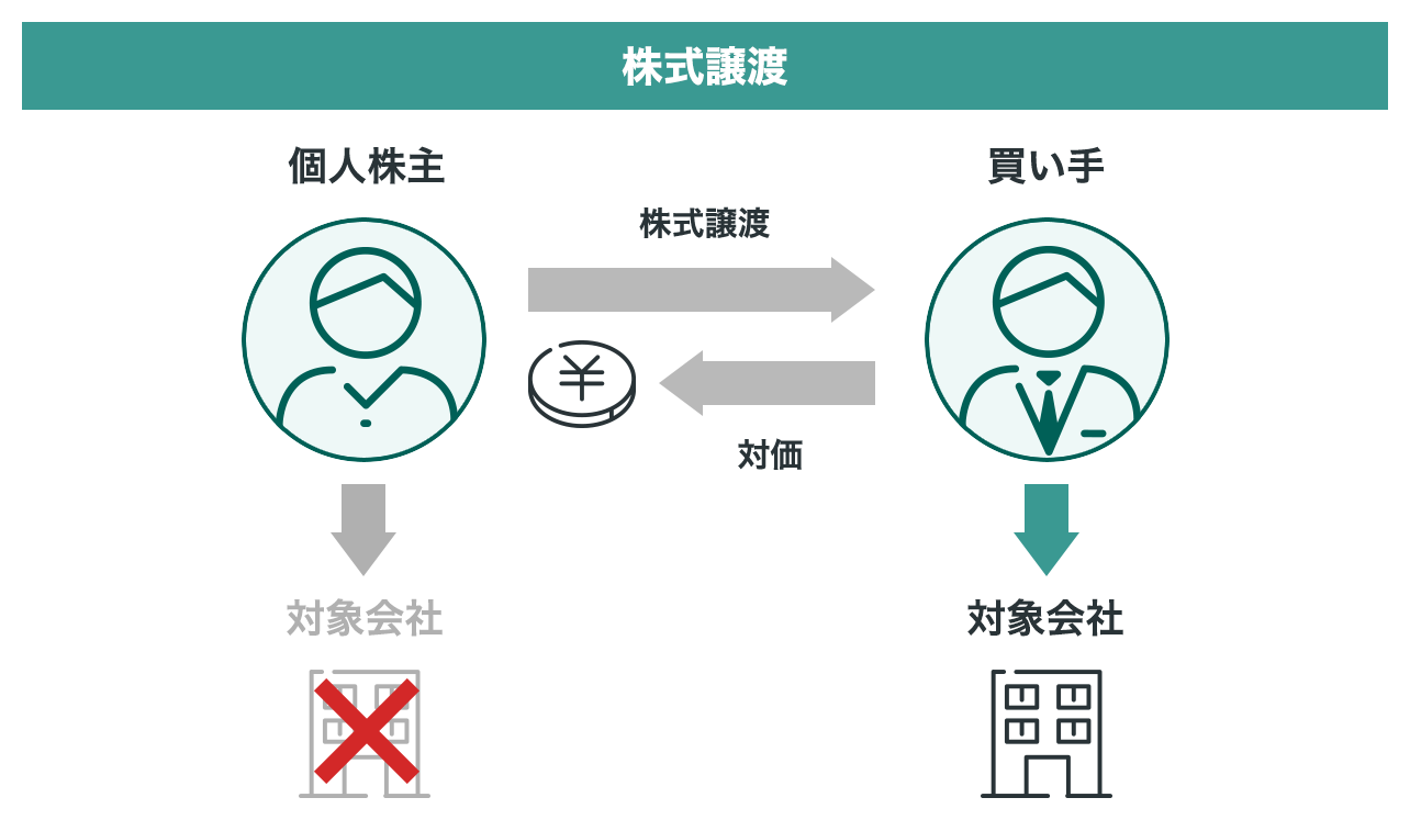 なお、M&Aスキームには様々なものがありますが、対価を譲渡側(売り手)個人が直接受け取れる手法は、基本的に「株式譲渡」に限られます。