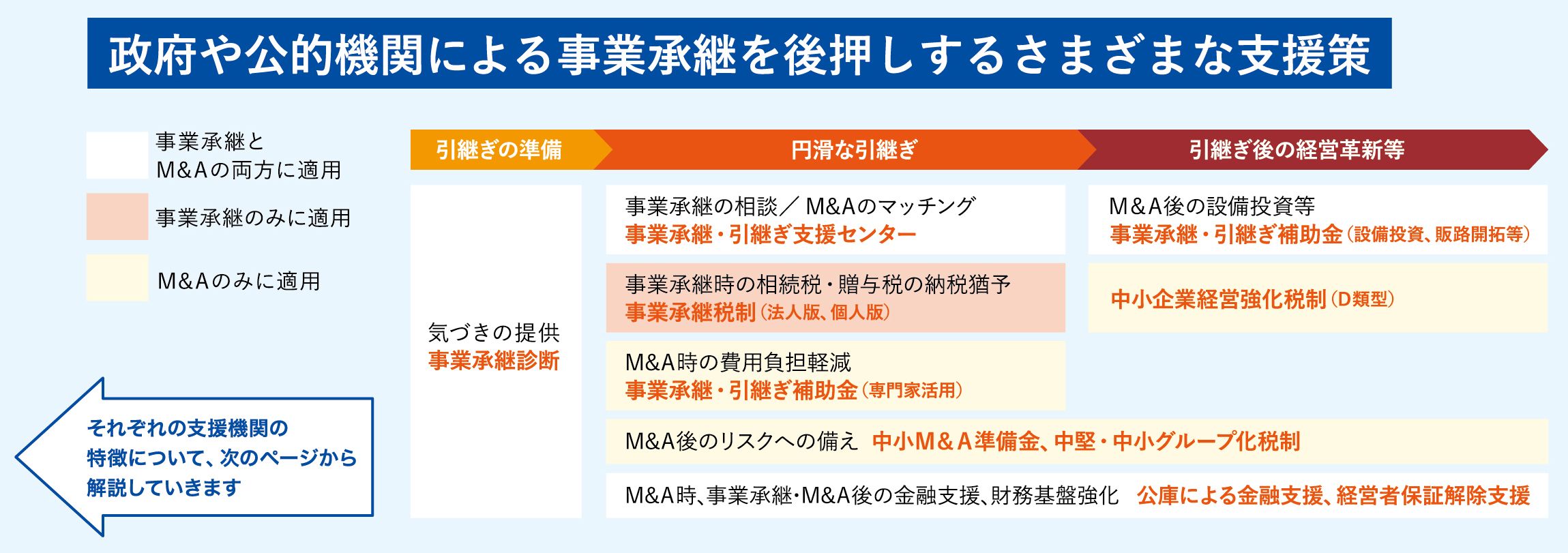 政府や公的機関による支援策もさまざま打ち出されており、各支援機関が事業承継をサポートしている状況です。