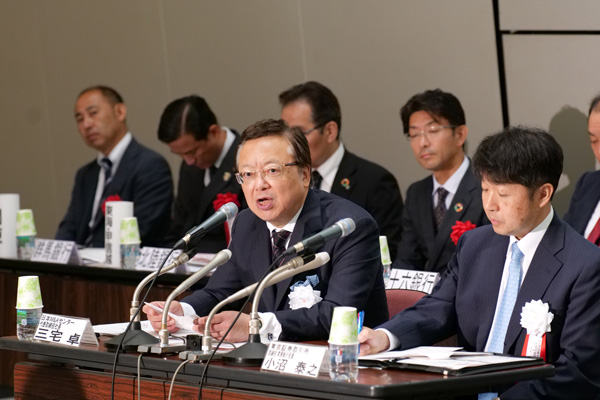 本日の記者会見では、まずはじめに社長三宅より、当社ならではの地方創生の考え方、そして今回のJ-Adviserの資格取得をもとに、当社が地域のためにできることなどをまとめた“企業成長型 地方創生モデル”を発表いたしました。真の地方創生のためには、地元企業の「ビジョン」とその「成長戦略の実現性」を示し、それにより働く世代の地域定着を促すことが必要、と解説いたしました。