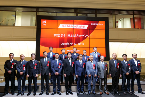 日本M&Aセンターは、2019年7月12日に、株式会社東京証券取引所より、東京証券取引所が運営するプロ投資家向け株式市場TOKYO PRO Marketに係るJ-Adviser資格を取得いたしました。これに伴い本日2019年7月26日に、東京証券取引所にてJ-Adviser資格取得セレモニーが執り行われました。