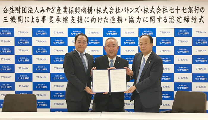 子会社のバトンズが七十七銀行、みやぎ産業振興機構と連携協定~全国初の民間企業・地方銀行・公的機関による連携が実現~