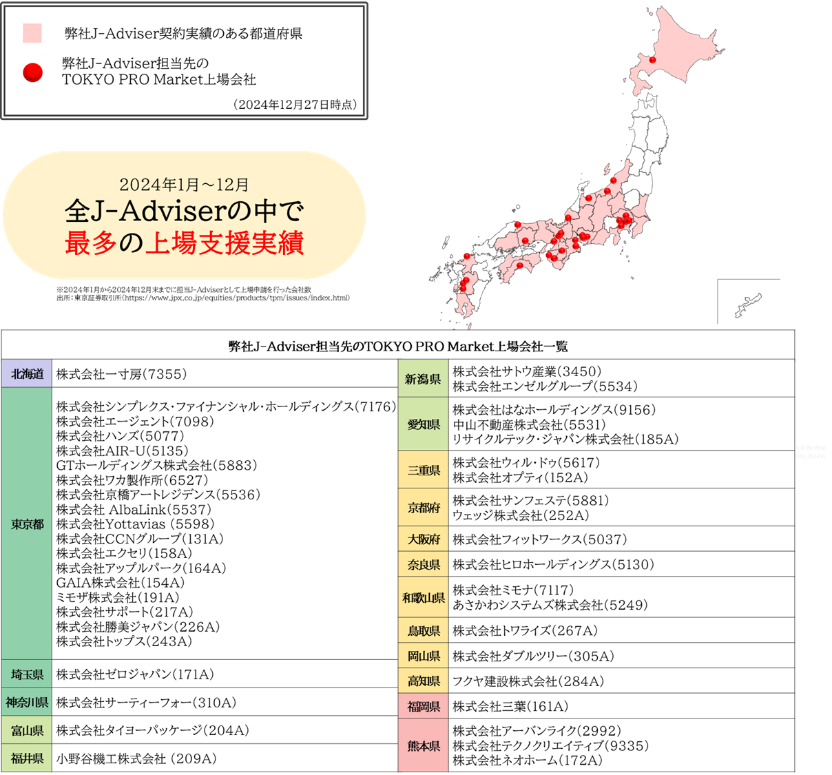 また、2024年12月には、福岡証券取引所が運営するプロ投資家向け市場、Fukuoka PRO Marketの上場指導・審査を行うF-Adviser資格も取得いたしました。