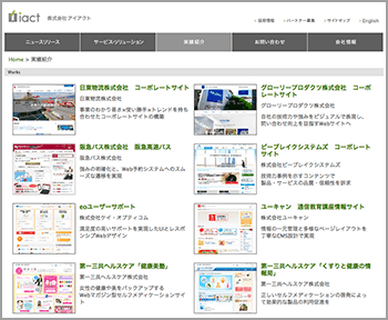 アイアクト様WEBサイト内の「実績紹介」では、多数の企業のWEBサイト制作実績が紹介されています