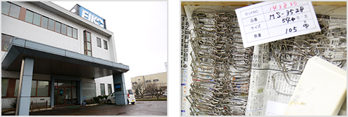 業歴40年超、眼鏡産地・鯖江を代表する企業である栄光眼鏡もまた、鯖江という世界的ブランドを確立させたいという使命感から会社の存続方法を模索していました。 (左)栄光眼鏡の本社 (右)同社が製造しているメタルフレーム