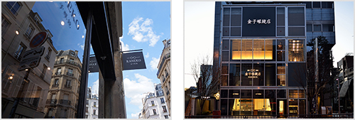主要都市を中心に、国内46店舗の直営店を運営。また、フランスに販売拠点をおき、グローバルにも展開しています。 (左)フランスの販売子会社KANEKO FRANCE SARL. (右)金子眼鏡東京・青山店