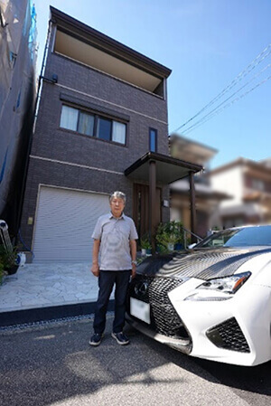 家族のために新築したわが家と愛車の前で