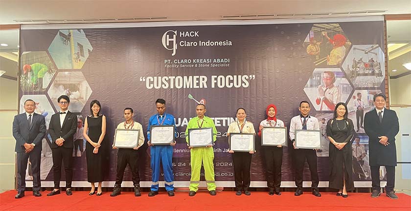 PT.Claro社では年に一度、幹部を集めた年次研修を行う。 夜の懇親会では活躍した社員をMVP等のアワードで表彰、プレゼンターを保坂社長、山崎取締役が務めた