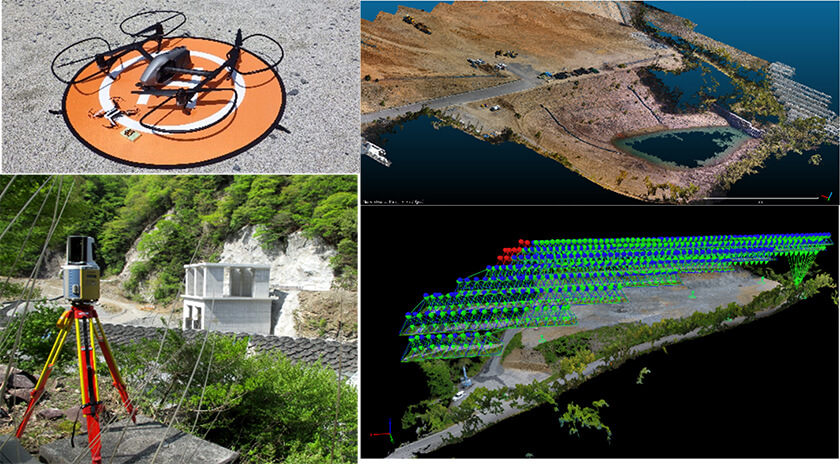 クワイスではドローンや3次元レーザースキャナーを使った測量・調査を行っている