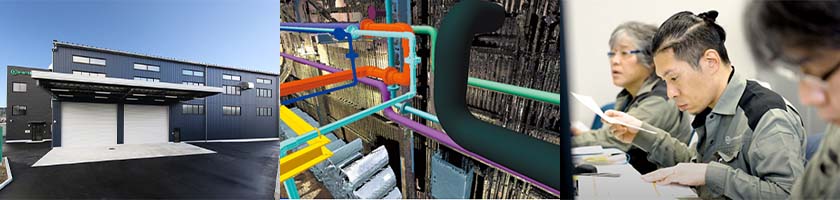 坂海工業所ではプラント工事をメインに配管ユニットの製作や三次元測定など最新技術の導入にも積極的に取り組む