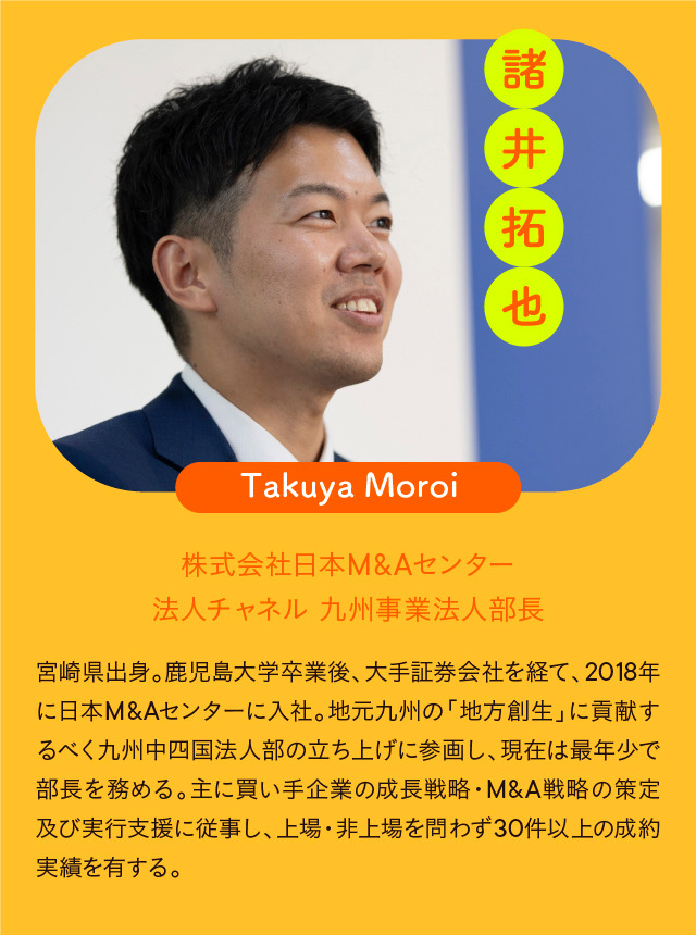 そんな中、大塩さんと二人三脚で理想の会社探しに奔走したのが、日本M&Aセンターの諸井拓也さんだった。