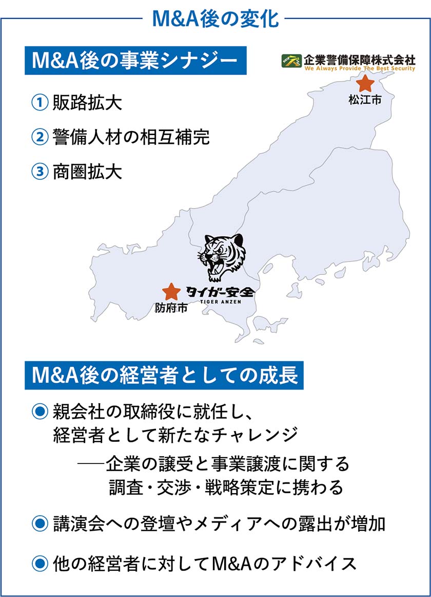 「事業はもちろんですが、一番の決め手になったのは、『人』の部分です。お相手の社長は私と同い年で自然と仲良くなれ、警備業界や建設業界の地位と待遇を向上させたいという志も一致していました」