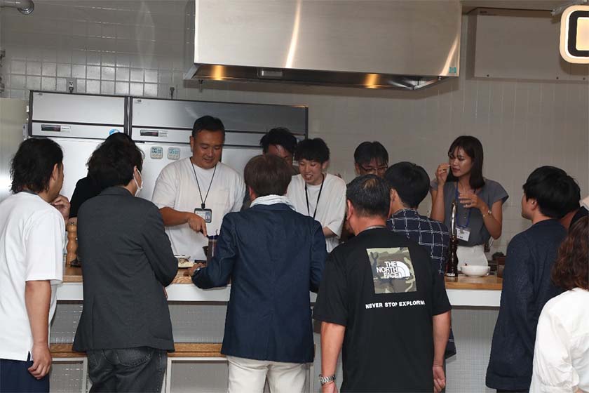 FUKUDA社新体制のキックオフパーティーでは、両社の社員がチームとなり「チーム対抗チャーハン作り」で白熱