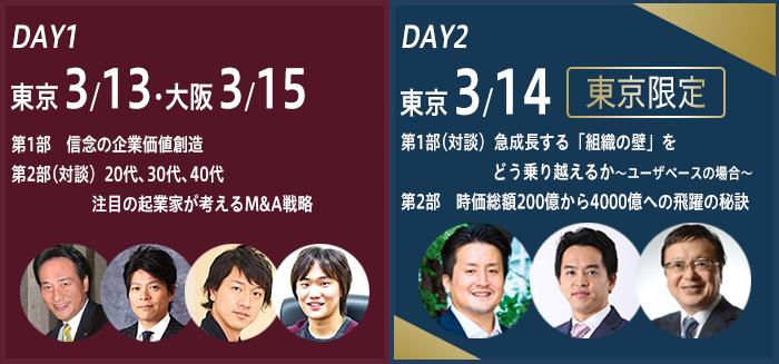 開催情報 [Day1] 東京(3/13)・大阪(3/15)|[Day2] 東京(3/14)