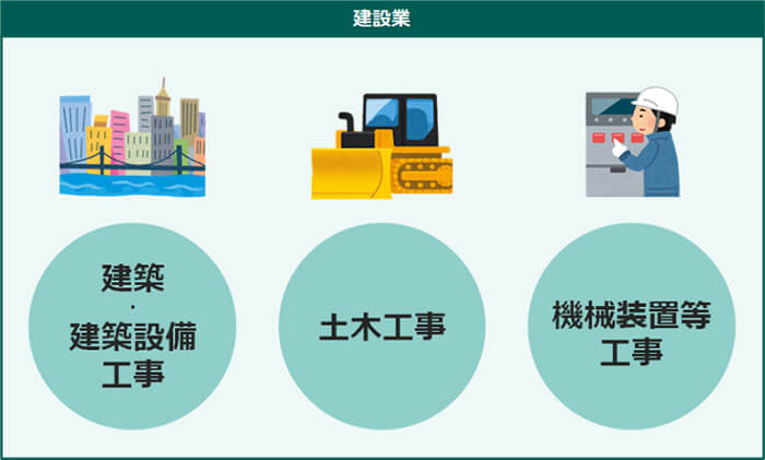 建設工事とは土木建築に関する工事であり、大別して「建築」と「土木」と「その他」に区分されています(図1)。