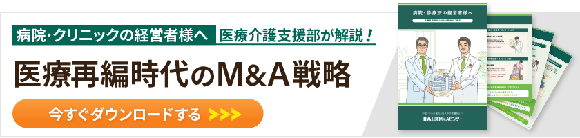 - 売り手におけるメリットは、創業者利益の獲得、地域における医療の継続、従業員の雇用の維持、連帯保証の解除 等が挙げられます。