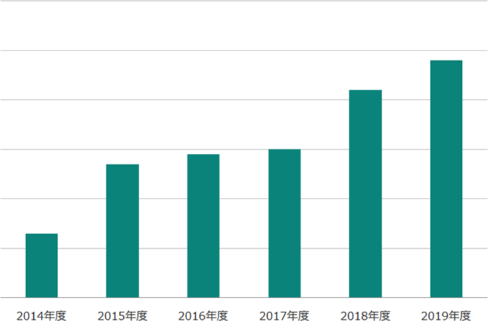 図6は当社でご支援させていただいた卸・小売業でのM&A件数の推移です。2014年度から年々増え続けており、2019年度までの5年間で4倍近い件数になっています。同時期における当社での成約件数が、338件から885件と2.6倍に増えていますので、卸・小売業界は他の業界以上にM&Aが活性化している業界といえます。