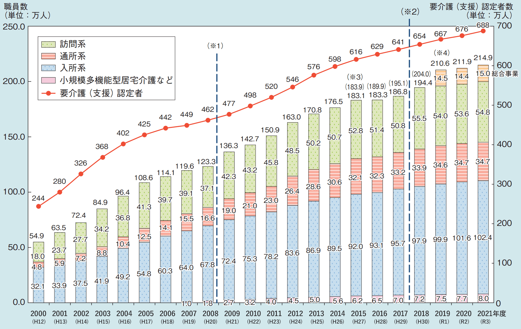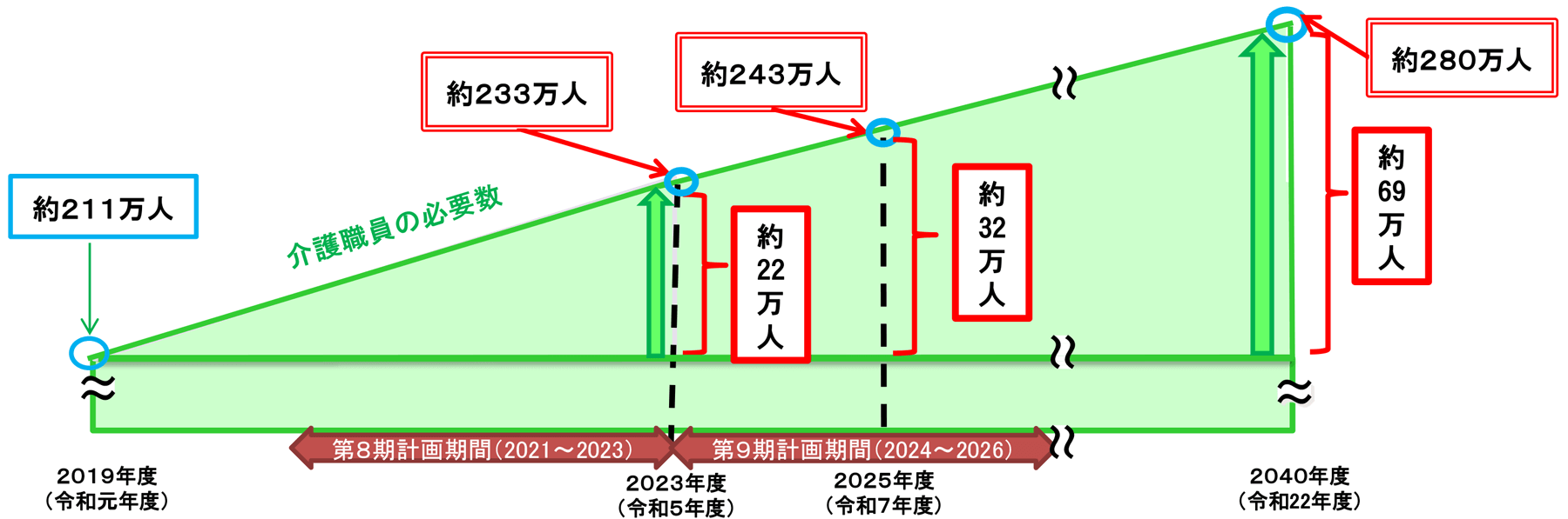 注1:2019年度(令和元年度)の介護職員数約211万人は、「令和元年介護サービス施設・事業所調査」による。
